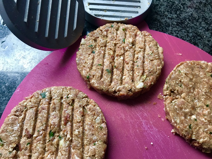 In dit recept heb ik gebruikt gemaakt van een hamburgerpers, maar je kunt ook gewoon ballen maken en deze vormen tot burgers. Ze zijn dat iets minder mooi en minder vormvast, maar qua smaak precies hetzelfde, dus net zo lekker. Deze heerlijke burgertjes kun je lekker bakken in de koekenpan, maar ze zijn ook top voor op de glutenvrije barbecue.