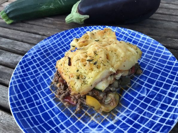 Ratatouille ovenschotel met gehakt, aardappels en kaas