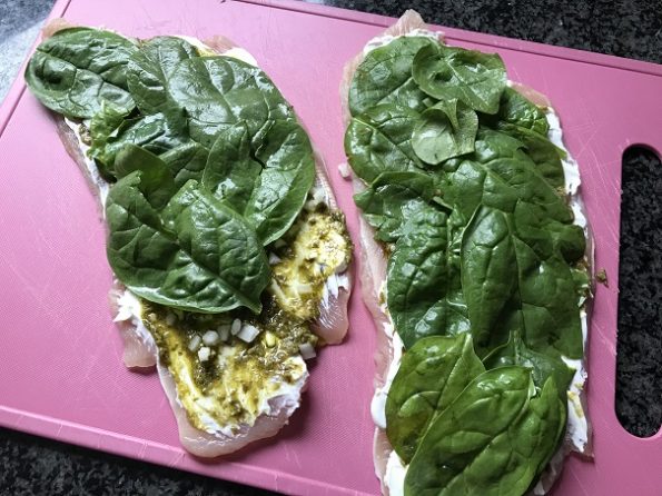 Kalkoenvinken met roomkaas, pesto en spinazie