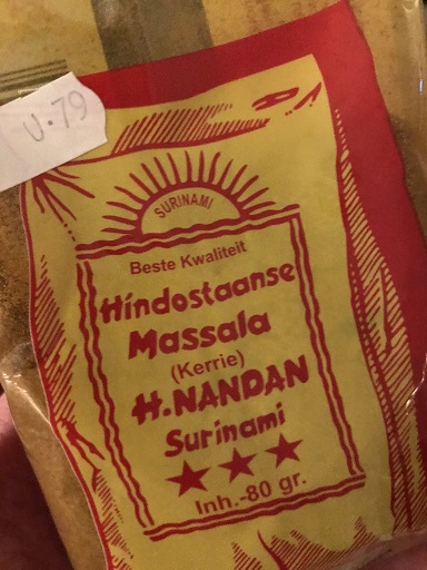 Maar goed, even genoeg over alle heerlijke spicy pepers die er zijn. Terug naar deze heerlijke Surinaamse masala kip. In dit gerecht gebruik ik ook masala kruiden. Deze koop je onder andere bij de Toko, Surinaamse winkel of Turkse supermarkt. Van een aardige dame uit Suriname kreeg ik ooit het advies om alleen deze masala kruiden, zoals op de foto, te gebruiken. Over andere merken masala kruiden had ze een pittige mening ;-). Ik heb haar advies ter harte genomen en het is inderdaad heerlijk.