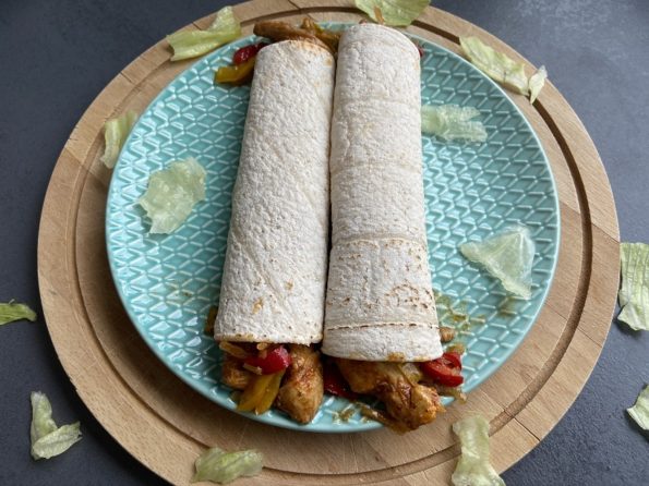 De lekkerste glutenvrije burritos met kip, paprika en lente-uitjes maak je gewoon heel makkelijk en snel zelf. Heerlijk als avondeten, maar ook een perfecte lunch.