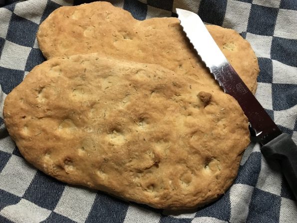 Een makkelijk recept voor home made gluten- en lactosevrije focaccia met rozemarijn en knoflook.